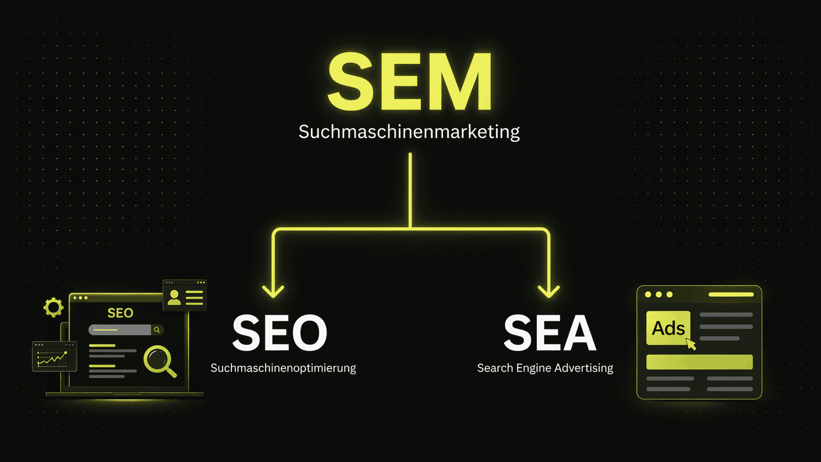 SEM umfasst zwei Hauptbereiche: Search Engine Optimization (SEO) und Search Engine Advertising (SEA).