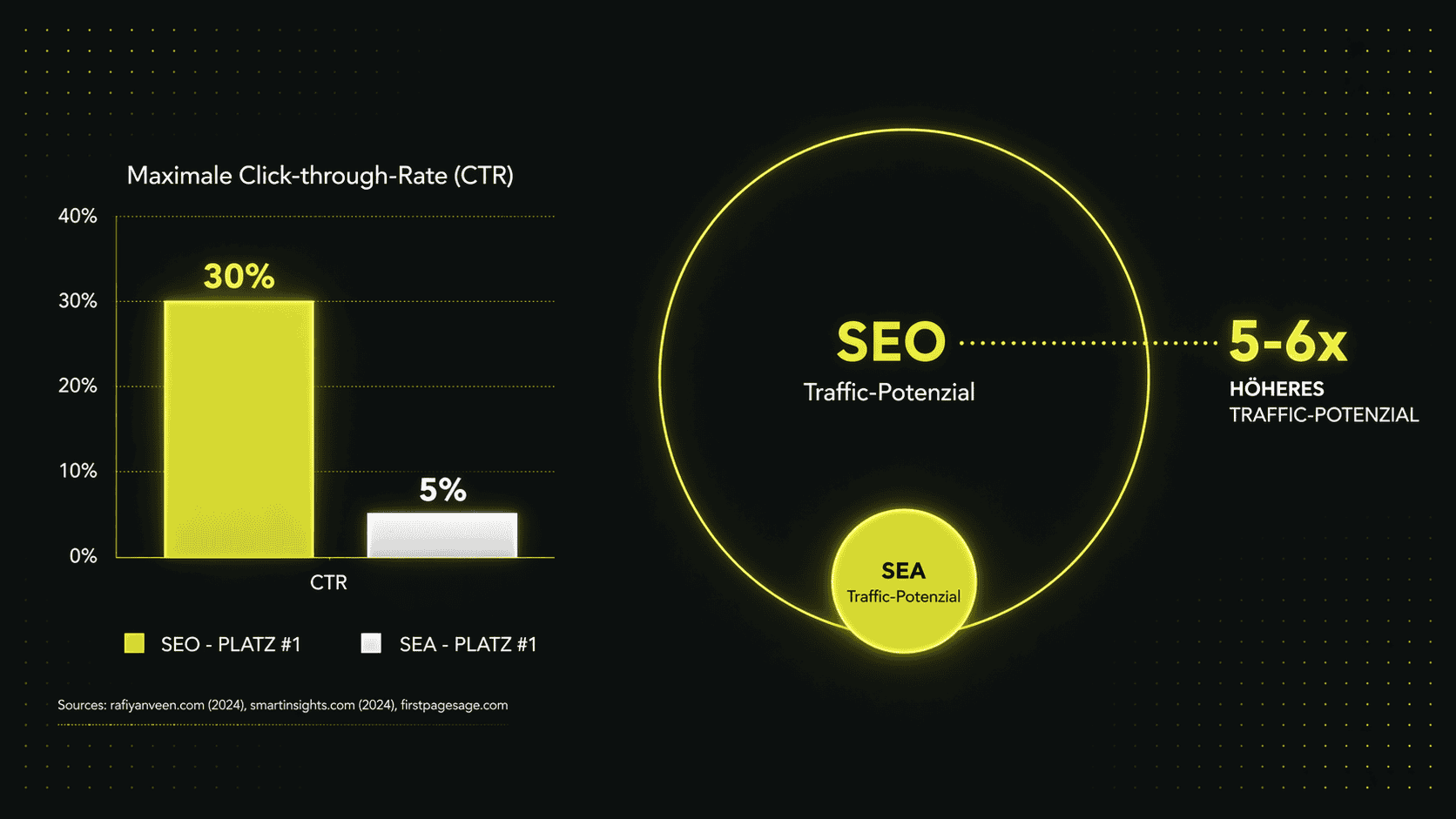 Wenn man diese Frage auf die nackten Zahlen von zahlreichen Studien reduzieren will, kann man festhalten. SEA lohnt sich kurzfristig mehr, langfristig ist SEO der wesentlich profitablere Kanal.