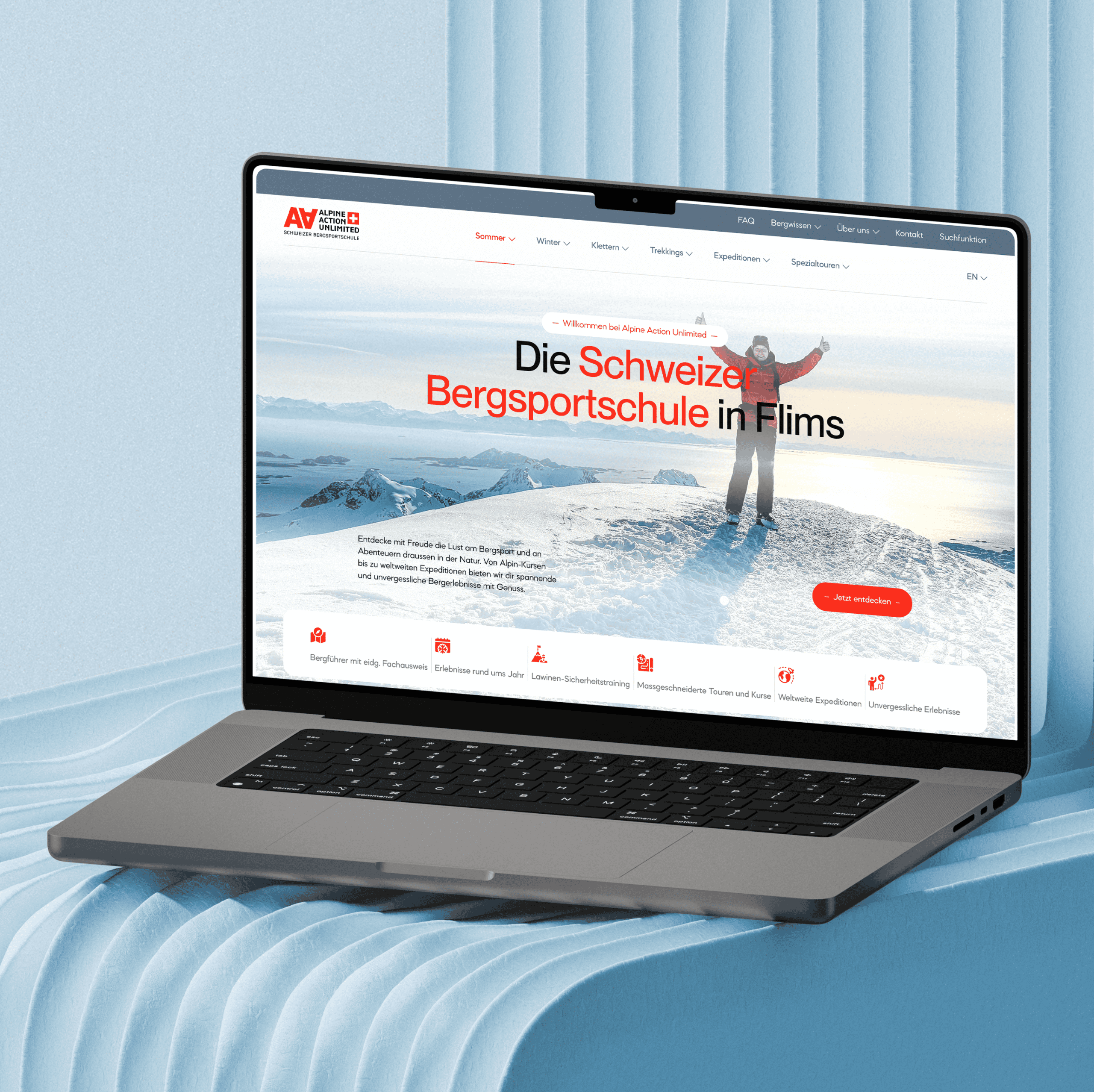 Für Alpine Action Unlimited haben wir eine modulare WordPress-Plattform entwickelt, die das breite Bergsport-Portfolio präzise strukturiert. Der Fokus lag auf einer intuitiven Nutzerführung zur Steigerung der Buchungsanfragen sowie einer technischen Architektur für SEO und GEO.